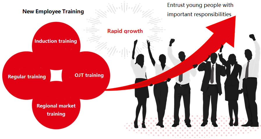 Newcomers will undergo regular review and follow-up training at 3 months, 6 months, 1 year, etc. after joining the company. The training content covers in-depth sales skills, improvement of technical abilities, methods for handling internal matters, and sharing of the situation of employees during the same period. Through these regular trainings, we continuously consolidate the knowledge and abilities of new employees during the training period, and improve and promote their personal growth.